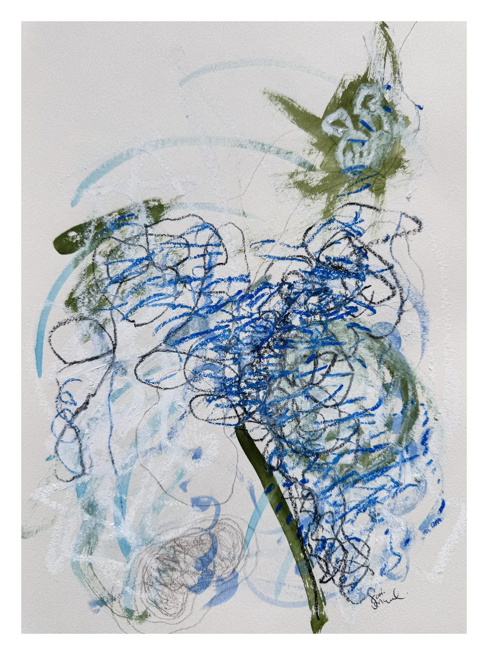 A pivotal shift occurred when she temporarily lost her voice due to psychogenic dysphonia, an experience that pulled her away from the corporate tech world and back into painting. Reclaiming her voice deepened her commitment to presence and emotional honesty, shaping the vitality that now defines her practice.